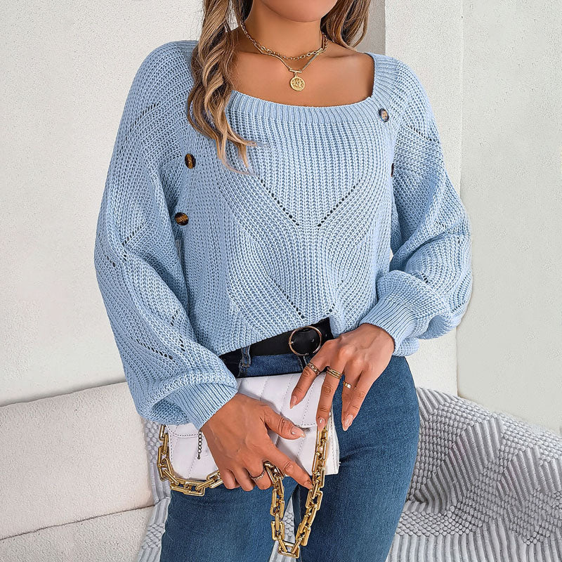 Avslappnad Enfärgad Stickad Tröja